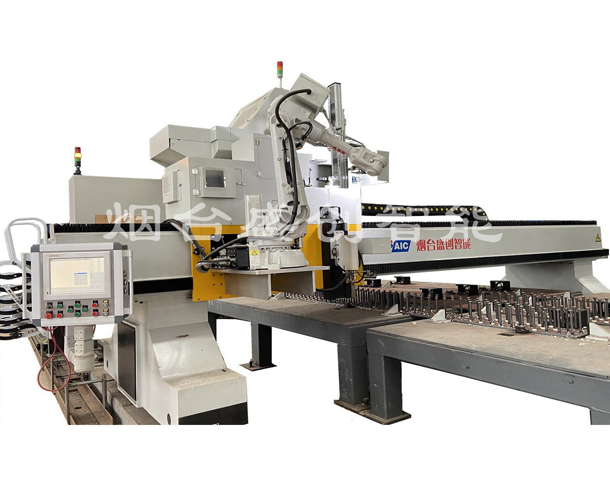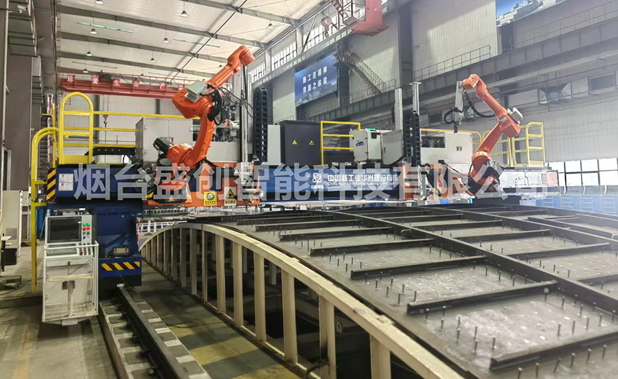 → 設(shè)備可實(shí)現(xiàn)鋼板自動除銹、焊點(diǎn)自動定位、剪力釘和瓷環(huán)無序自動上料、自動配合、自動焊接的全自動作業(yè)流程。