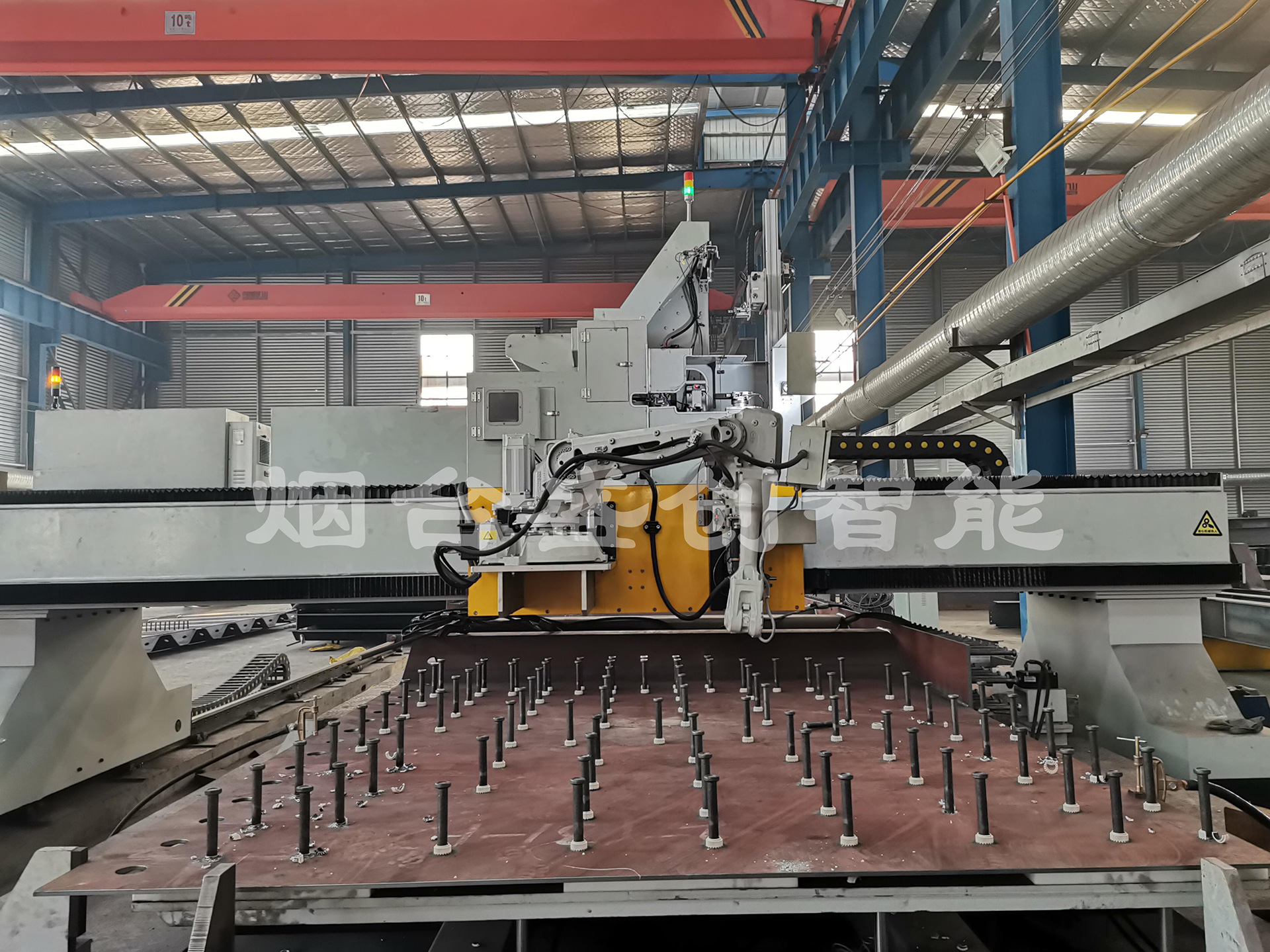 我公司自主研發(fā)的剪力釘(帶瓷環(huán))自動(dòng)焊接機(jī)器人設(shè)備,采用數(shù)控龍門(mén)、工業(yè)機(jī)器人、工業(yè)視覺(jué)等技術(shù),可完全取代人工,實(shí)現(xiàn)鋼板自動(dòng)除銹、焊點(diǎn)自動(dòng)定位、剪力釘和瓷環(huán)自動(dòng)上料、自動(dòng)配合、自動(dòng)焊接的全自動(dòng)作業(yè)流程。設(shè)備可用于平板、弧形板、異形板的自動(dòng)焊接。